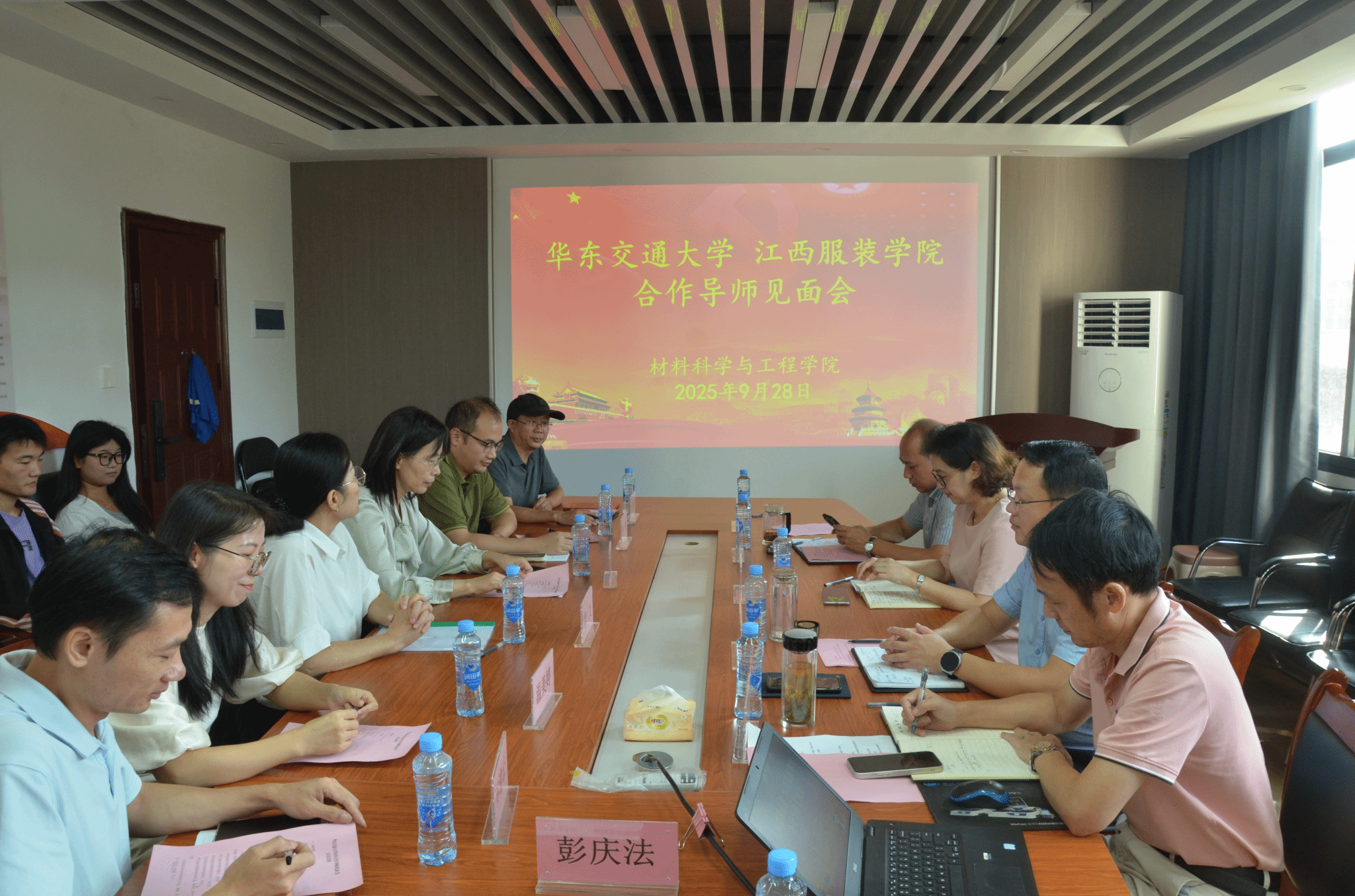 2025年9月28日,我校与江西服装学院联合培养硕士研究生导师见面会在材料学院举行。会议由材料学院副院长何忠义主持。江西服装学院学科建设与发展规划处处长甘文,研究生院副院长朱嘉蔚、材料学院院长沈明学出席。
